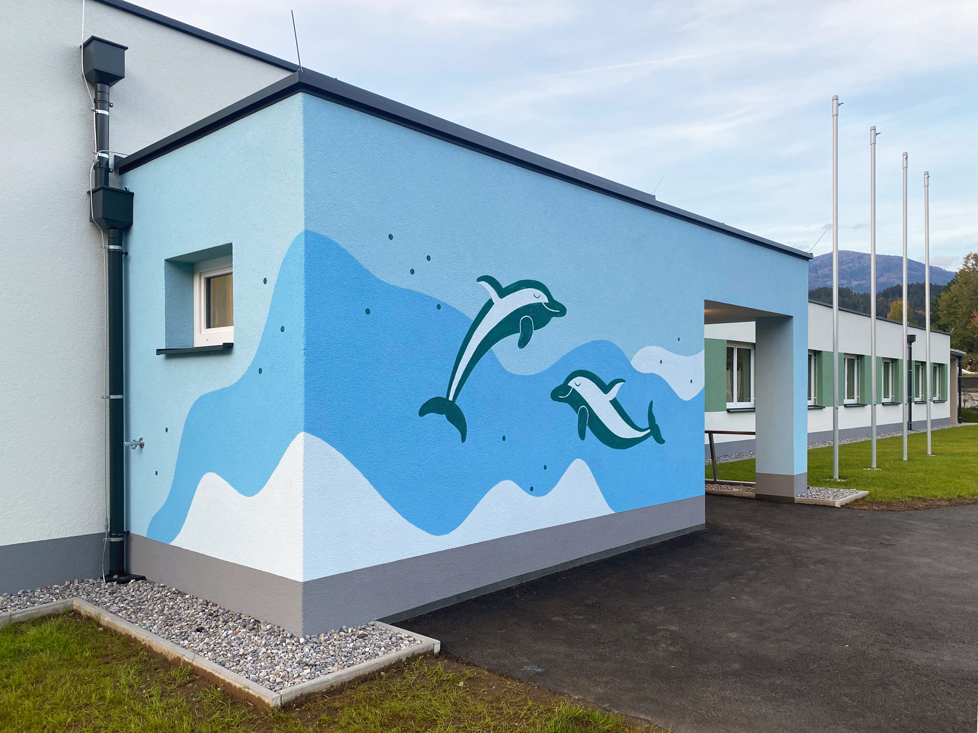 Wandgestaltungen für die Kinderschutzzentren Delfi in Spittal an der Drau und Villach.