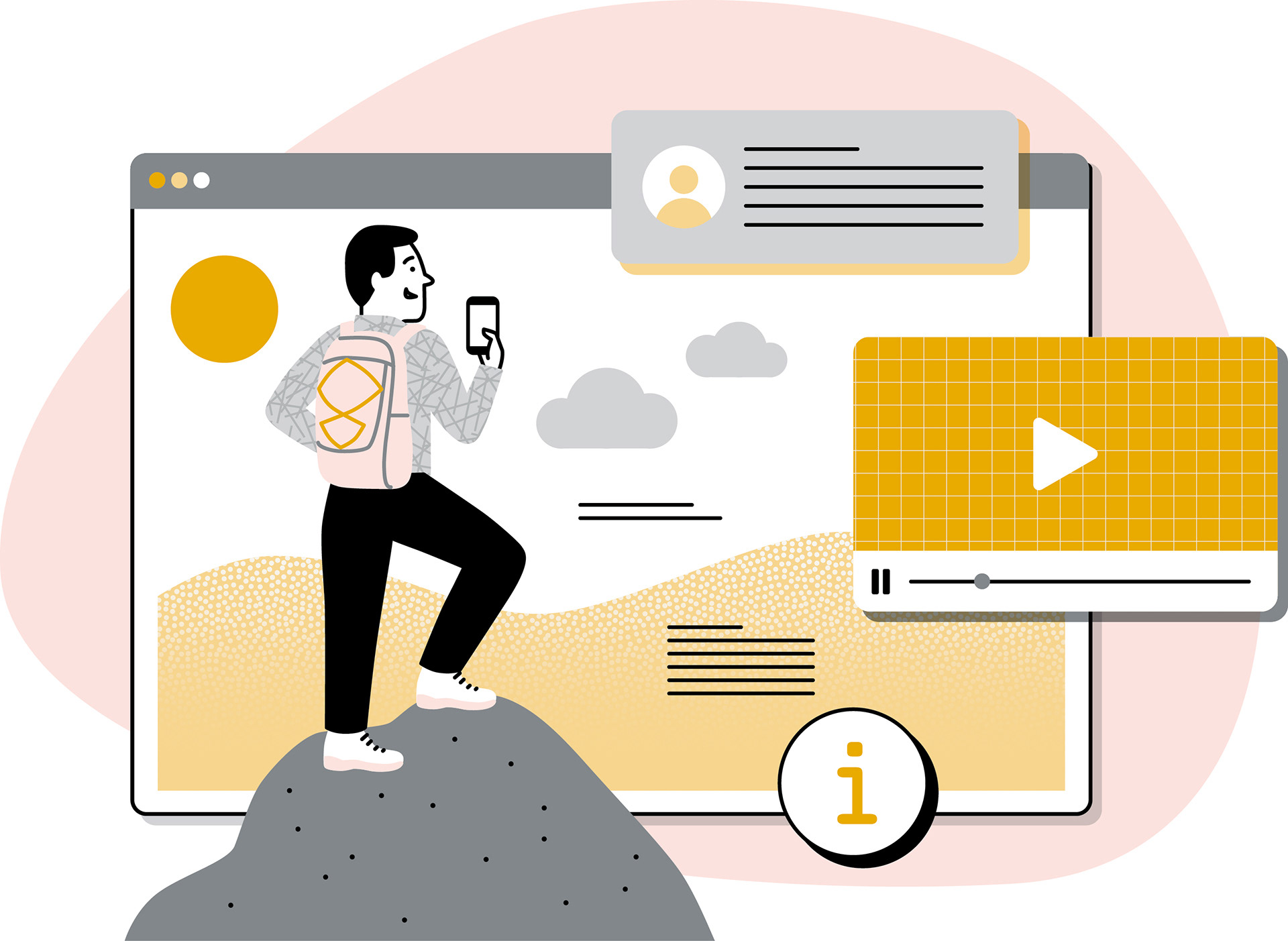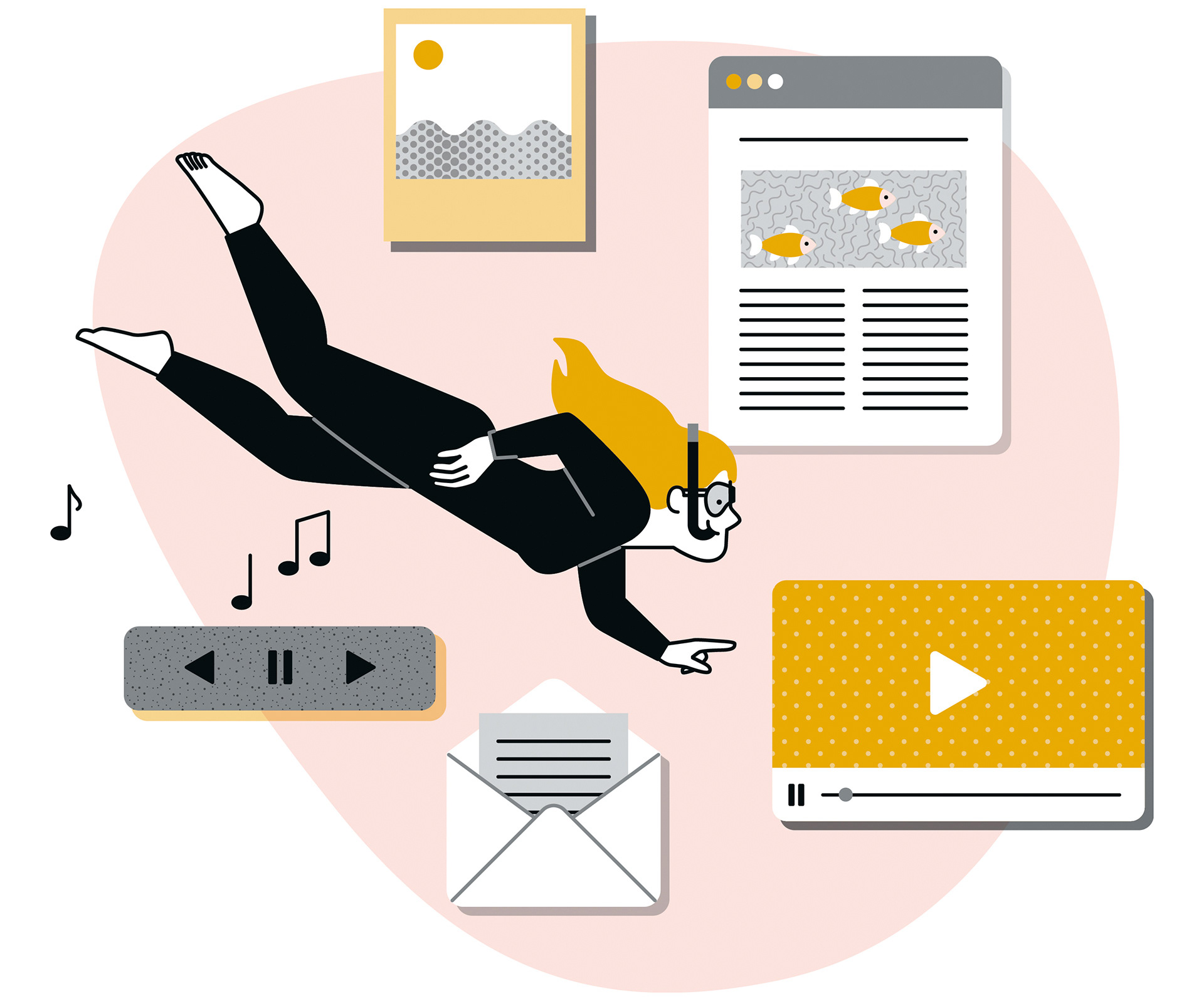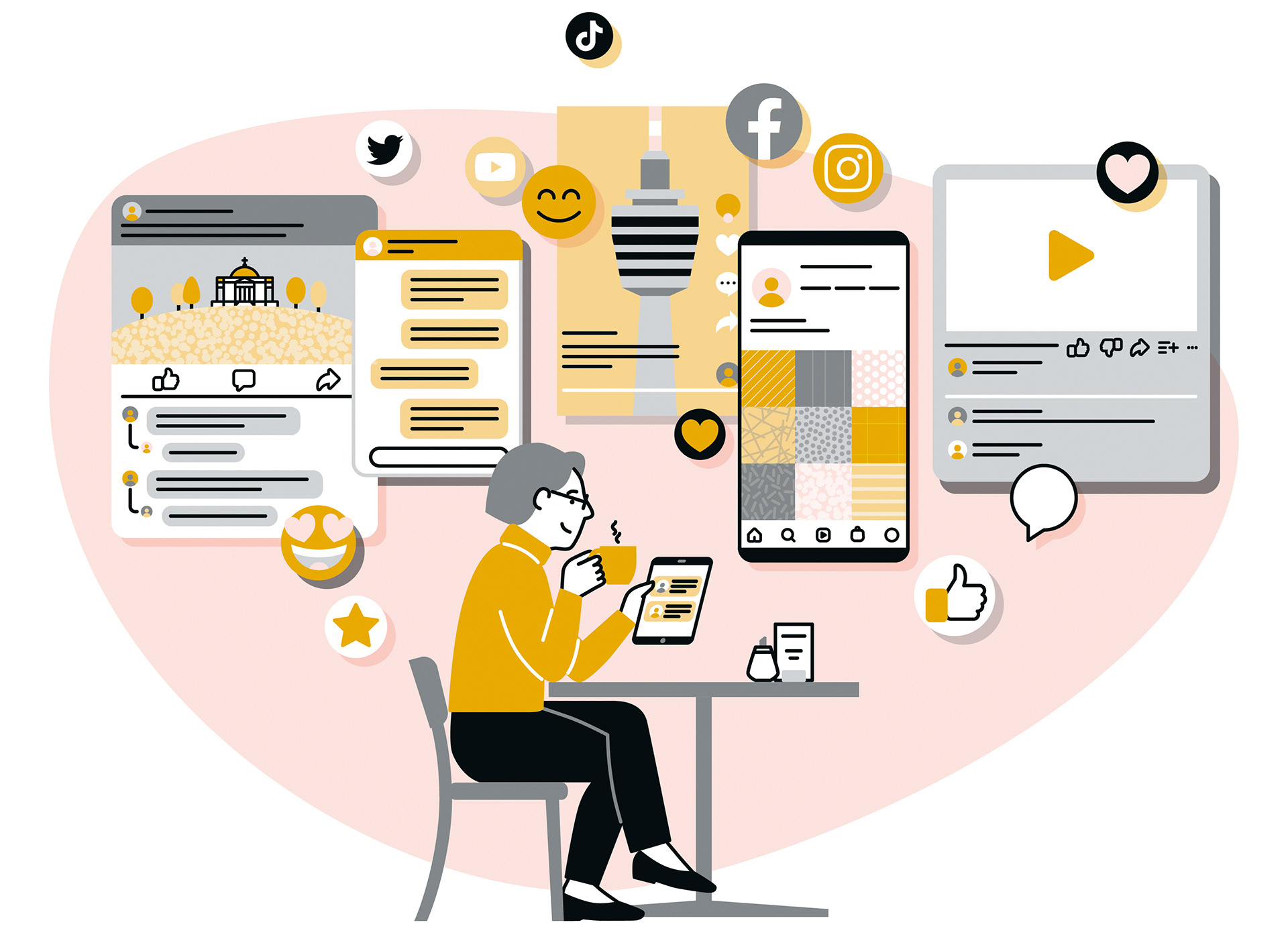 Illustrationen für eine Infokampagne, die dazu einladen soll die vielfältige digitale Medienlandschaft der »Stuttgarter Zeitung« und der »Stuttgarter Nachrichten« zu entdecken.