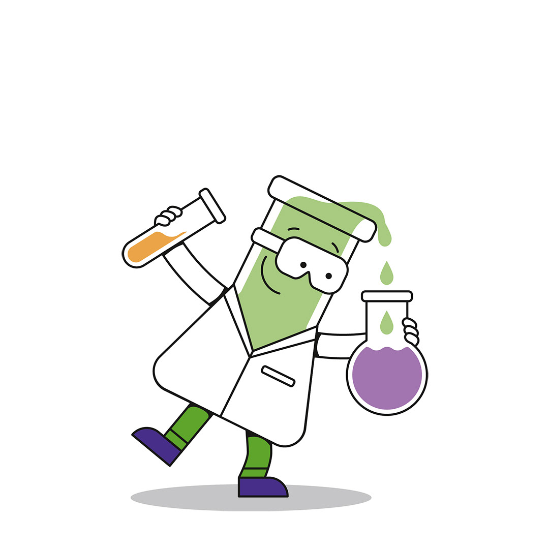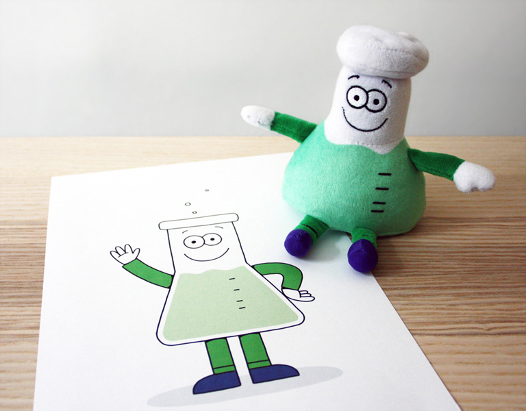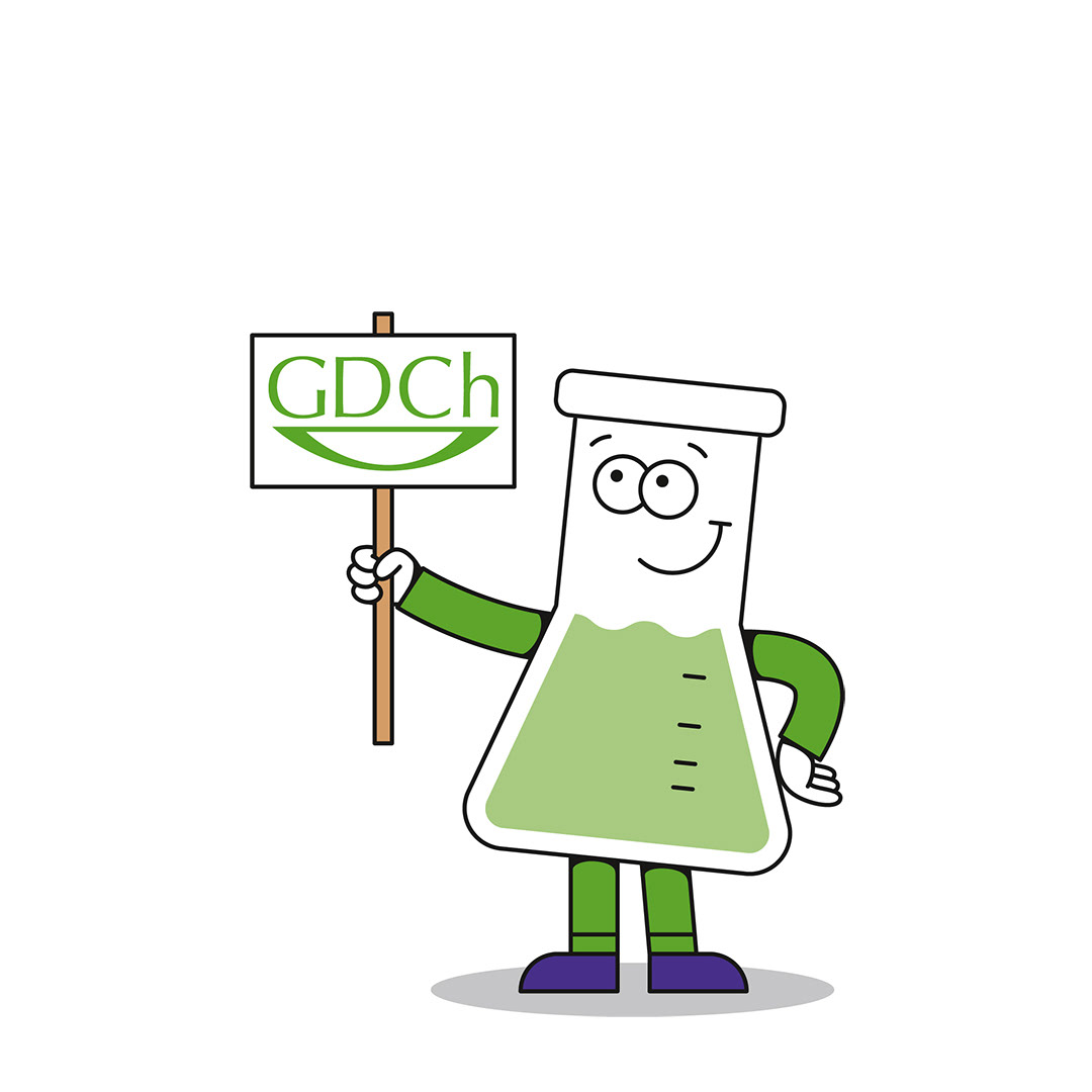 Es ist außerdem der Star einer Cartoonserie, die ich gemeinsam mit einer Arbeitsgruppe der GDCh entwickeln durfte. Dort erklärt das Erlenmeyerchen, wo sich im alltäglichen Leben die Chemie versteckt.