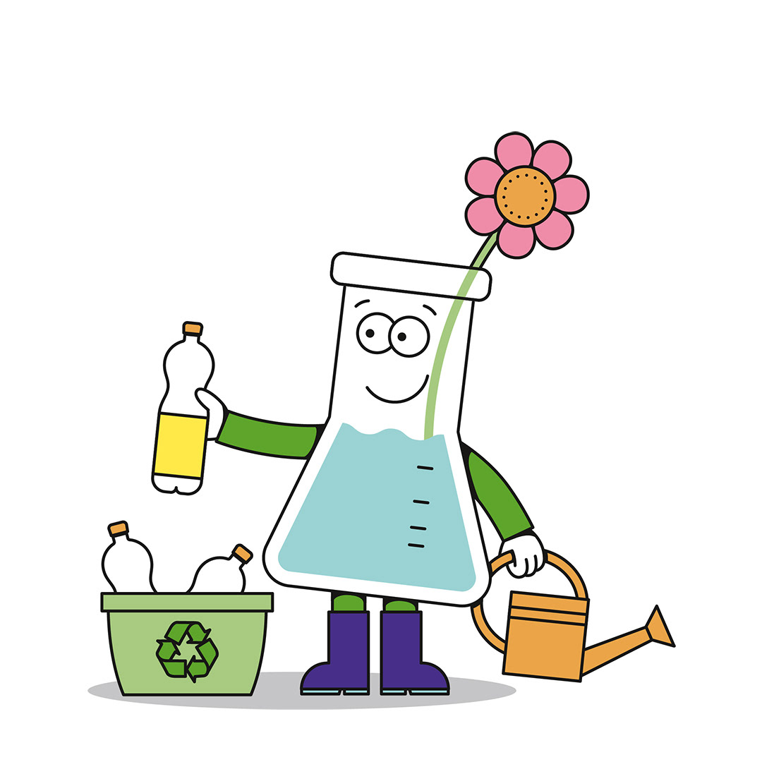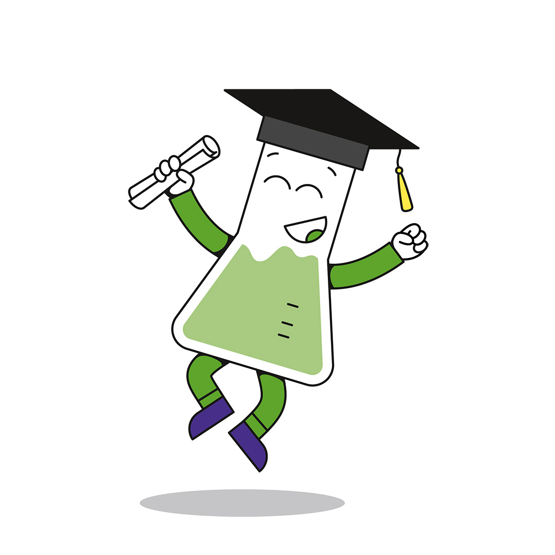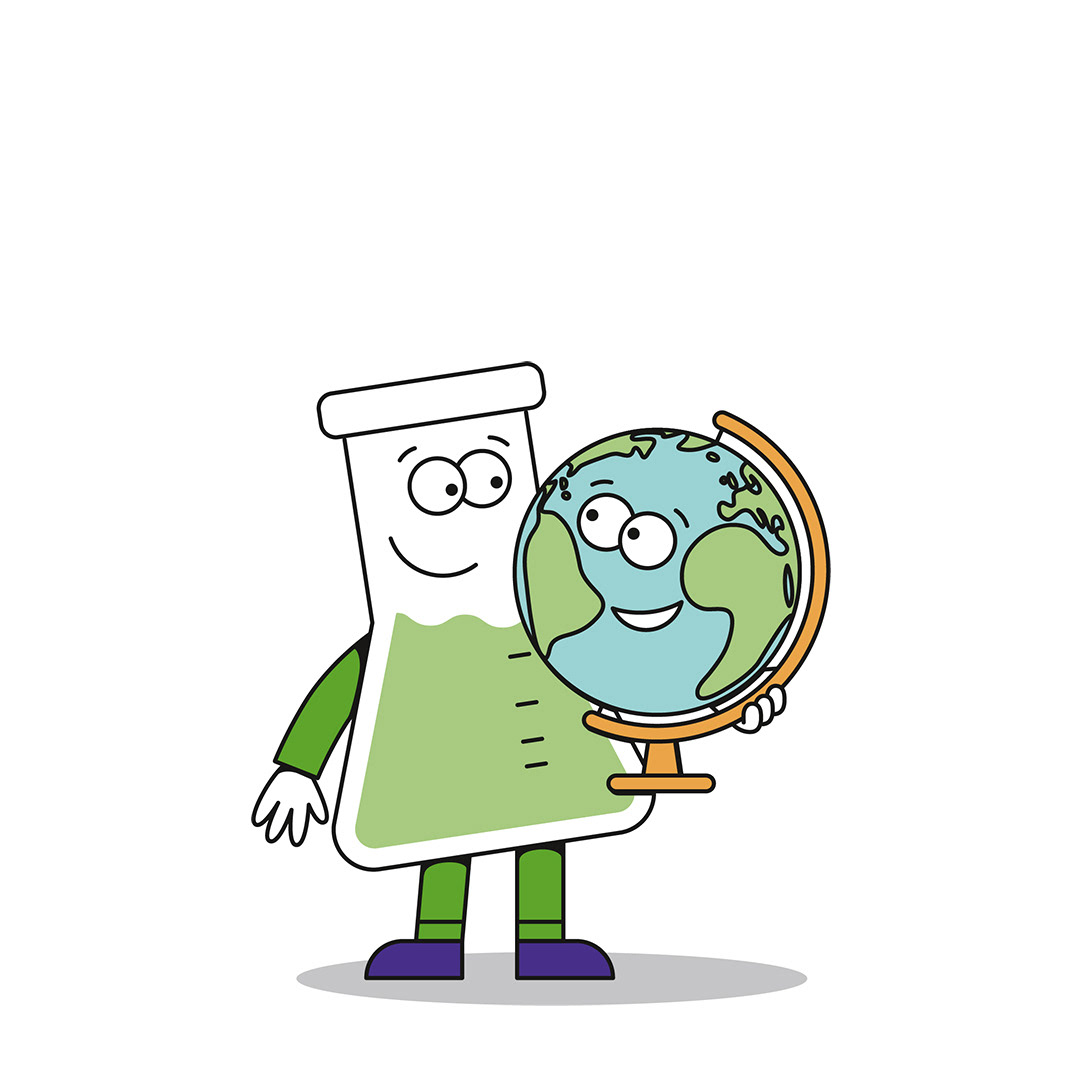 Es ist außerdem der Star einer Cartoonserie, die ich gemeinsam mit einer Arbeitsgruppe der GDCh entwickeln durfte. Dort erklärt das Erlenmeyerchen, wo sich im alltäglichen Leben die Chemie versteckt.