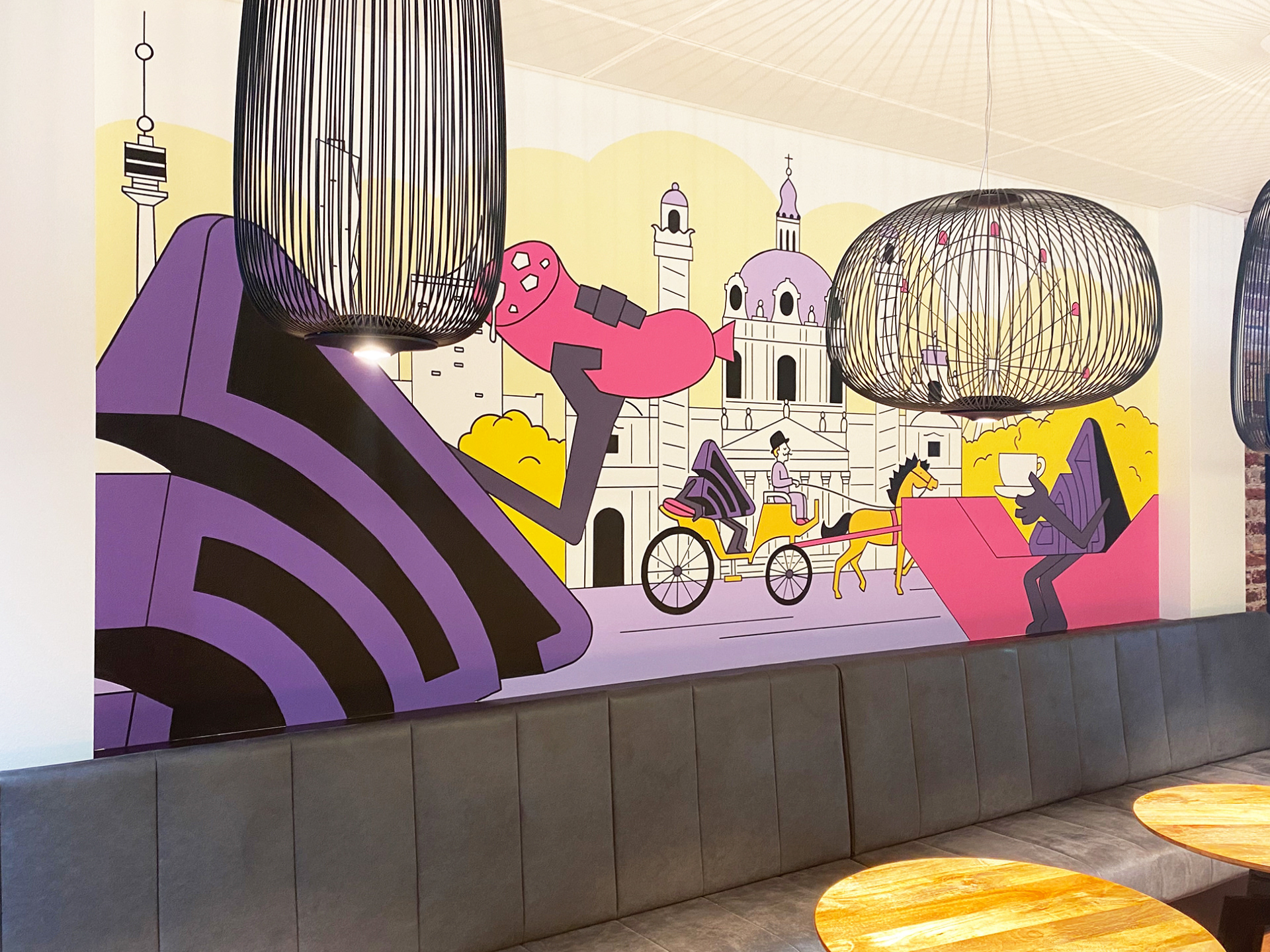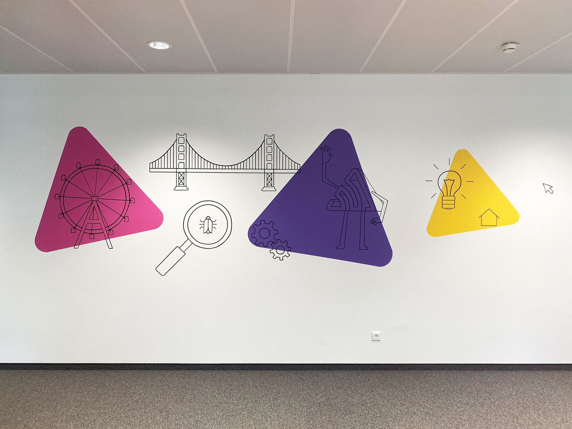 Wandgestaltung für das Büro von Sentry Application Monitoring in Wien.